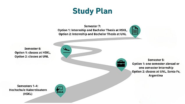- Semesters 5 & 6: Study at UNL (recognized as a mobility semester and specialization).