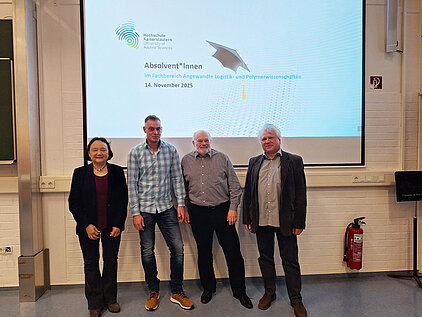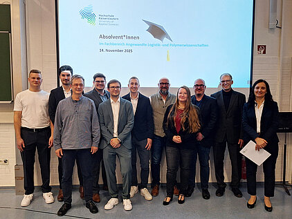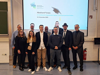 Am 14. November 2025 verabschiedete der Fachbereich Angewandte Logistik- und Polymerwissenschaften seine Bachelor- und Masterabsolvent*innen. Dekan Professor Dr. Jörg Sebastian lobte den Durchhaltewillen der Studierenden: „Ihr habt alle viel Biß gehabt, habt durchgehalten bis zum Schluss, habt auch die schmerzhaften Klausuren irgendwie überstanden und euren Abschluss geschafft.“ Für die Lehrenden sei es „wie eine kleine Medaille“, die Absolvent*innen erfolgreich im Berufsleben zu sehen.