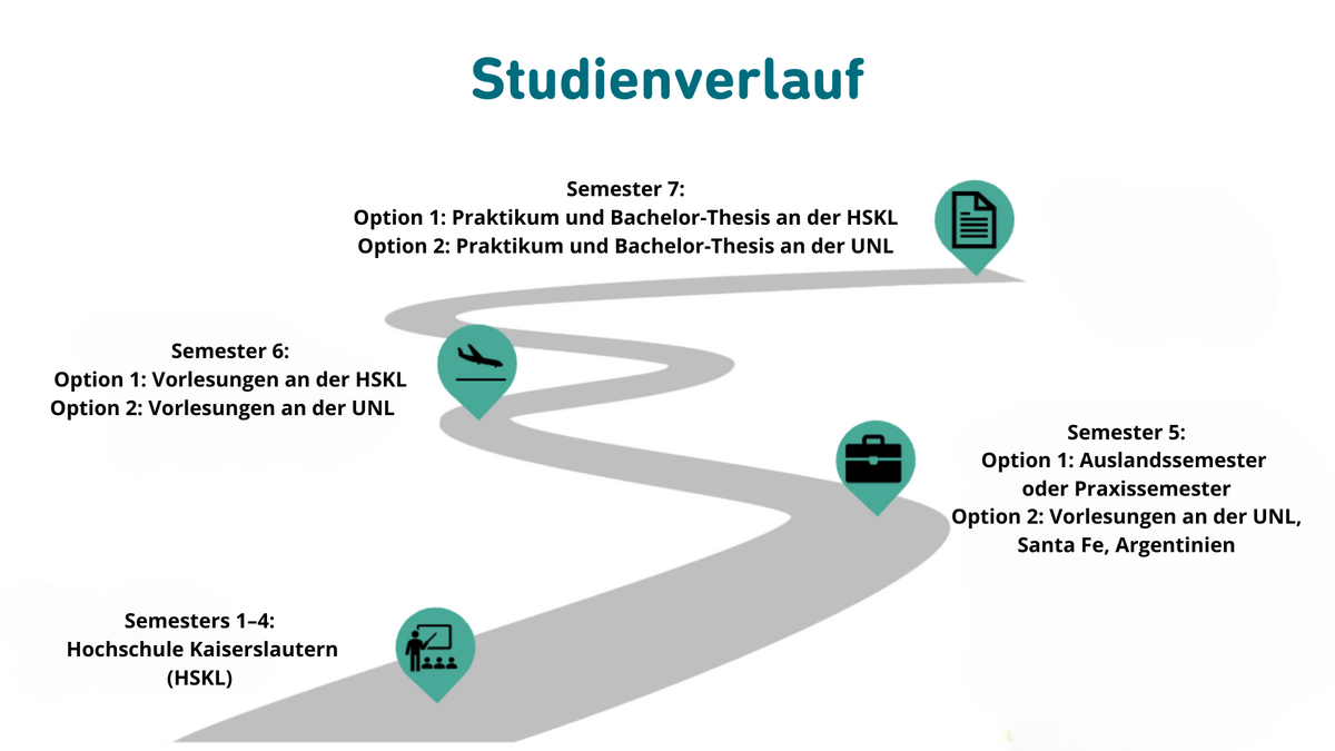 - Semester 7: Integriertes Praxissemester in einem argentinischen Unternehmen.