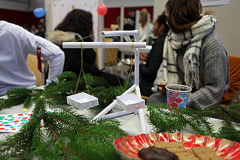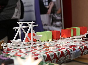 Eine sagenhafte Fehlerquote von lediglich 1,6 mg wies die beste Waage auf, die Team 7 aus der Hochschule gebaut hatte. In der Wertung der Besucherinnen und Besucher hatte das Team der Landgraf Ludwig Realschule den schönsten und kreativsten Stand, an dem es zudem dem weihnachtlichen Anlass gemäß, leckere Zimtwaffeln gab.