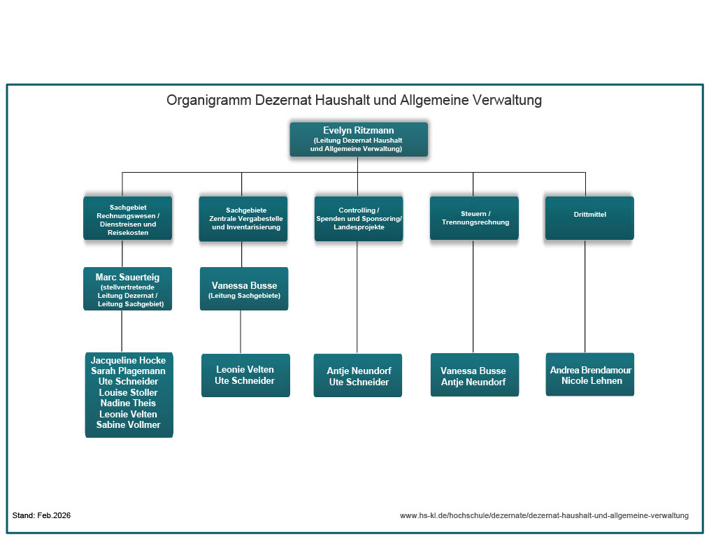 Zu den Kernaufgaben des Dezernats Haushalt und Allgemeine Verwaltung gehören die Verwaltung der Haushaltsmittel sowie die Erbringung diverser Serviceleistungen für Mitarbeitende und Studierende.