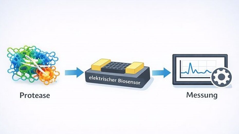 Proteases cleave peptides and proteins in the body, and abnormal concentrations are associated with diseases such as cancer, cardiovascular disease, and psychiatric disorders. Continuous monitoring of protease biomarkers can provide insights into disease progression and therapeutic effects, but to date there are no simple online detection methods for complex samples. The project is developing electrical biosensors for the continuous measurement of protease activity. The system will then be validated in serum samples and compared with established protease detection methods.