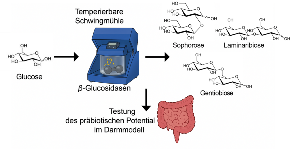 To investigate the effectiveness of the synthesized disaccharides with regard to their prebiotic and health-promoting properties, mouse colon organoids will be treated with Akkermansia muciniphila in combination with the selected disaccharides. The project thus contributes to sustainable process development in line with the principles of green chemistry and opens new perspectives for applications in the bioeconomy, food technology, and pharmaceutical biotechnology.