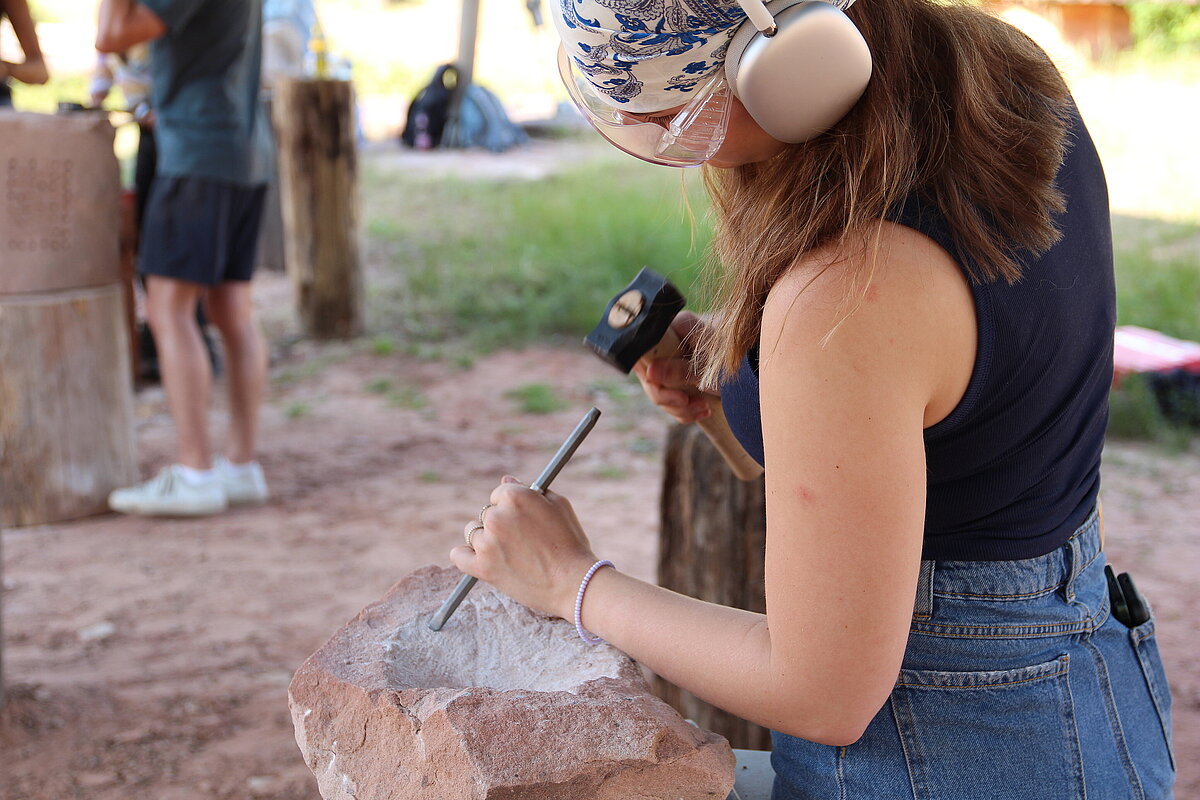 - TECHNISCH: Materialkenntnisse (Sandstein) | Manuelle Techniken der Steinbildhauerei | Praktischer Umgang mit Hammer, Meißel sowie manuellen Schleiftechniken