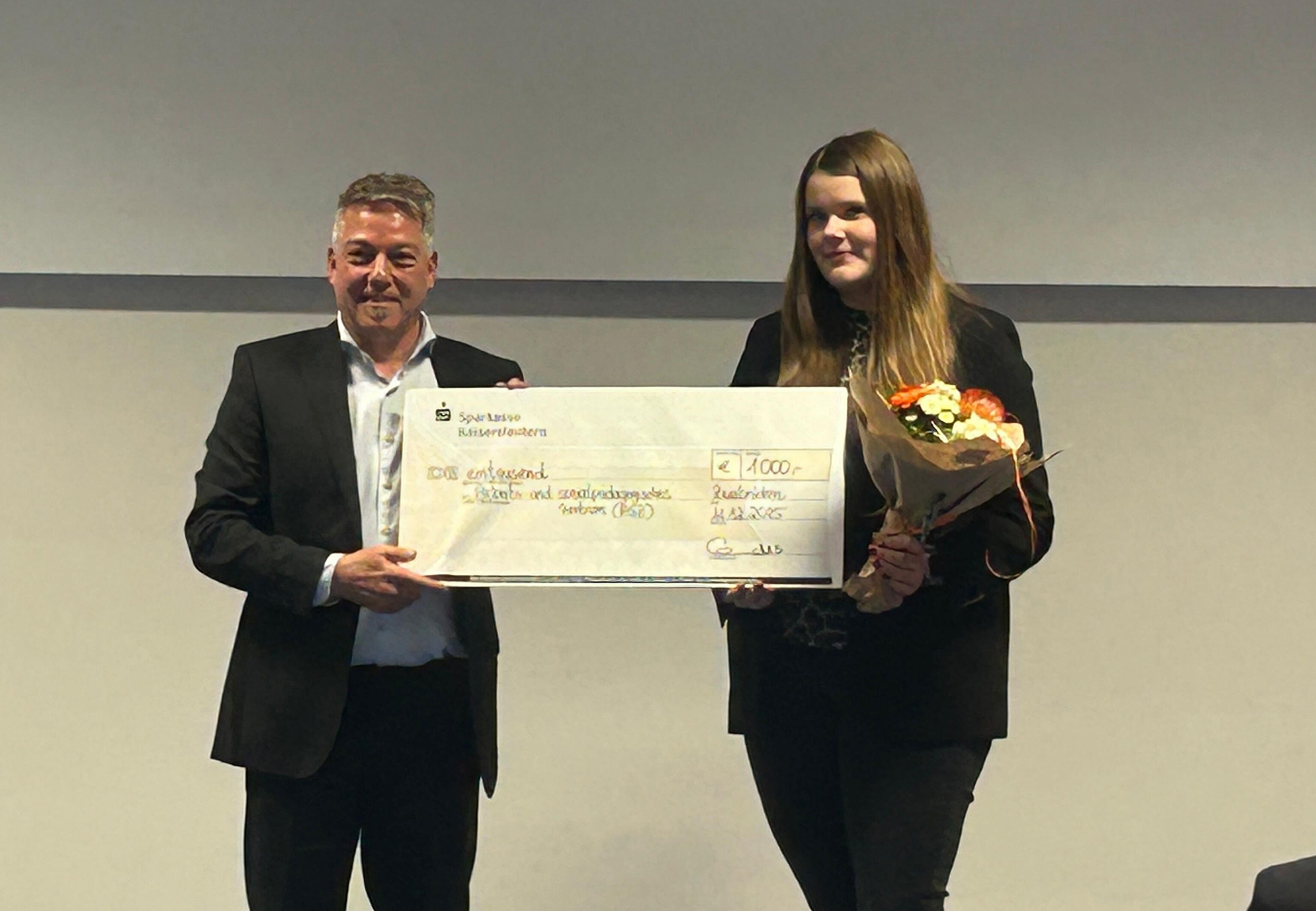 Auch kulturell setzt er seit vielen Jahren Akzente. Als Gründer und Kurator der „Jazzbühne“ in der Fruchthalle, einer seit langem klimaneutralen Konzertreihe, verbindet er Musik, Nachhaltigkeit und gesellschaftlichen Austausch. Das Preisgeld von 1.000 Euro spendete der Preisträger an das Arbeits- und Sozialpädagogische Zentrum (ASZ). Stellvertretend nahm Frauke Neugebauer die Spende entgegen, die Bildungs- und Arbeitsprojekte für benachteiligte Gruppen in der Region unterstützt.