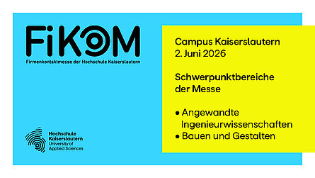 Den Auftakt macht die FiKoM am Standort Kaiserslautern, wo am 2. Juni von 10 bis 15 Uhr engagierte Student*innen und Absolvent*innen auf Unternehmen treffen können, die Nachwuchskräfte suchen und Zukunft gestalten wollen.