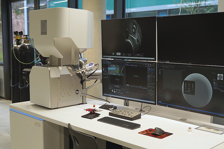 Im Rahmen eines von der Deutschen Forschungsgemeinschaft (DFG) geförderten Großgeräteantrags wurde ein hochauflösendes Rasterelektronenmikroskop Clara der Firma Tescan mit Energiedispersiver Röntgenspektroskopie (EDX), Elektronenrückstreubeugung (EBSD) sowie Scanning Transmission Electron Microscopy (STEM) beschafft. Das System erlaubt auch bei niedrigen Beschleunigungsspannungen sehr hohe Vergrößerungen sowie den Betrieb im Niedervakuum. Dadurch können unterschiedlichste Materialklassen, von metallischen Werkstoffen wie Stählen und elektrochemisch abgeschiedenen Legierungen, über Polymere und Verbundwerkstoffe bis hin zu synthetischen Nanomaterialien und biologischen Zellen, mit hoher Präzision untersucht werden.