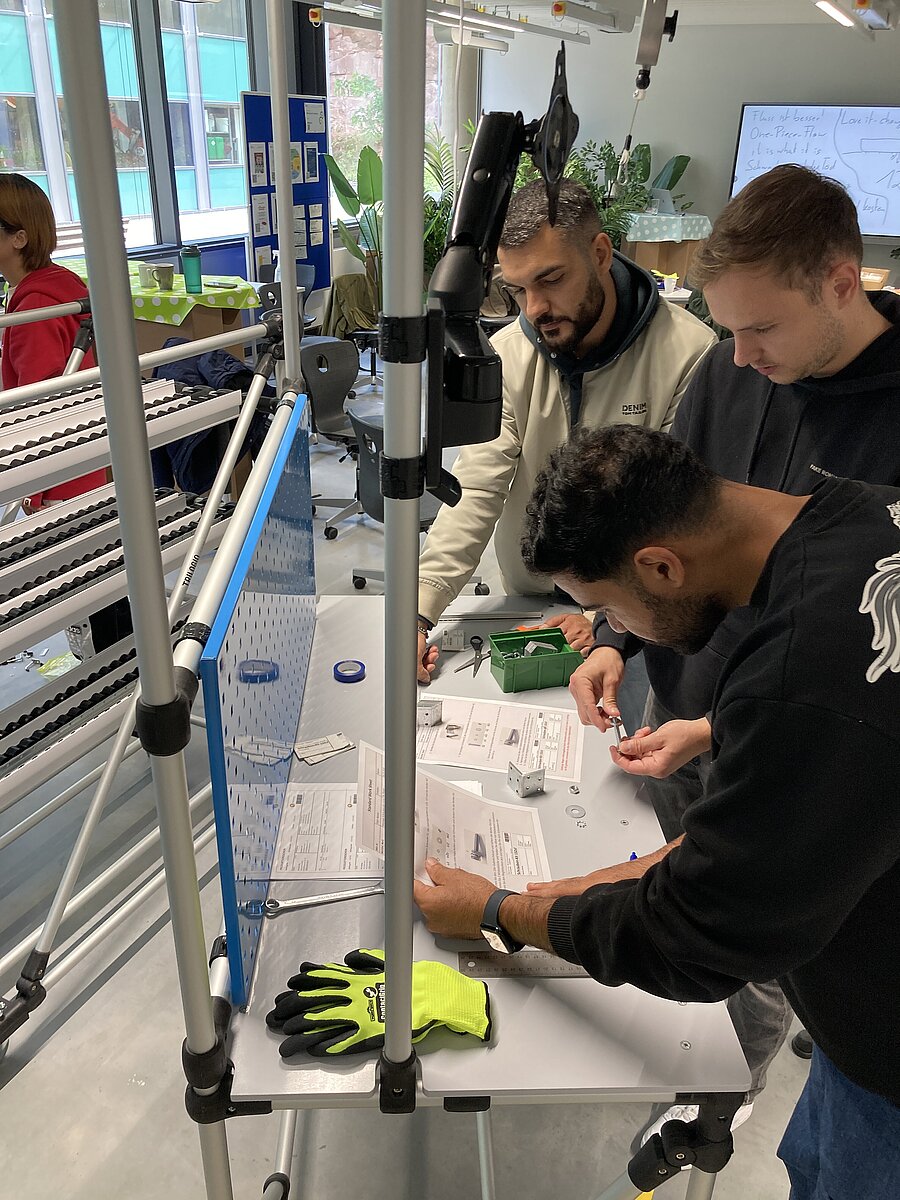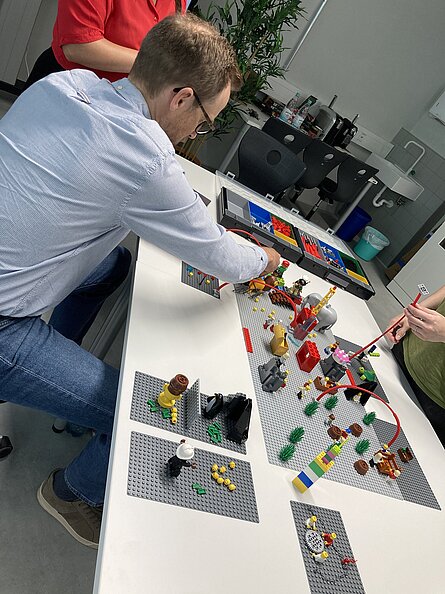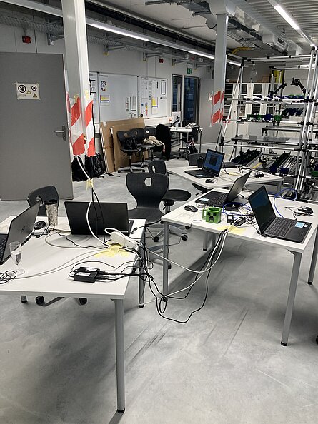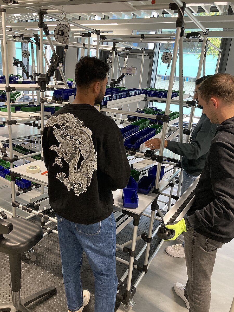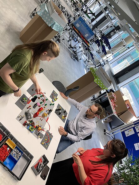 Das flexible Raumkonzept ermöglicht aber viele Szenarien - mal ist hier nahezu komplett eine kleine Montagefabrik mit Logistik und Zulieferern in Opex-, Lean- und SixSigma-Trainings zu finden, mal verwandelt sich der Raum großteils in ein Entwicklungsbüro zum SCRUM-Training oder einen Kreativ- und Maker-Space für Design Thinking, TRIZ, LEGO(R) SERIOUS PLAY(R)-Methoden und andere Innovationsmethodiken.