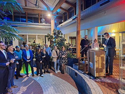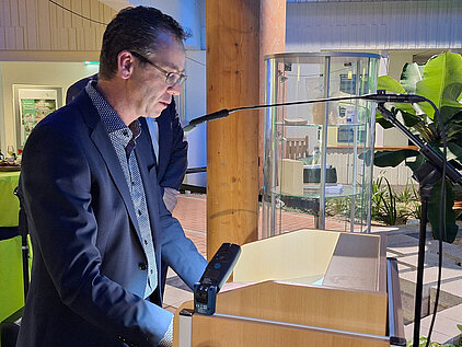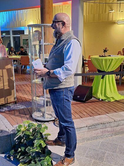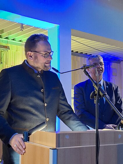 Für den Freundeskreis der Hochschule sprach Christian Schwarz und hob den besonderen Charakter des Standorts hervor: spezialisierte Studiengänge, die es so kein zweites Mal deutschlandweit gäbe, engagierte Lehrende, die mit Leidenschaft und Geduld dafür sorgten, dass aus jungen Menschen echte Expertinnen und Experten werden und Studierende, die bereit seien, mit Wissen, Neugier und Durchhaltevermögen ihre Zukunft zu gestalten.