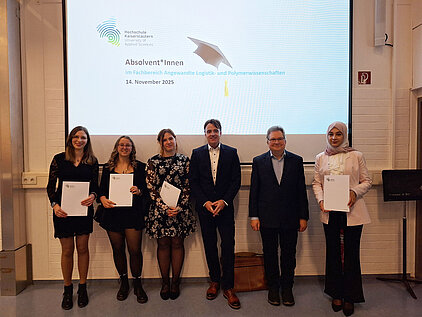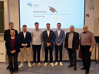 Am 14. November 2025 verabschiedete der Fachbereich Angewandte Logistik- und Polymerwissenschaften seine Bachelor- und Masterabsolvent*innen. Dekan Professor Dr. Jörg Sebastian lobte den Durchhaltewillen der Studierenden: „Ihr habt alle viel Biß gehabt, habt durchgehalten bis zum Schluss, habt auch die schmerzhaften Klausuren irgendwie überstanden und euren Abschluss geschafft.“ Für die Lehrenden sei es „wie eine kleine Medaille“, die Absolvent*innen erfolgreich im Berufsleben zu sehen.