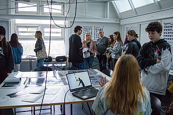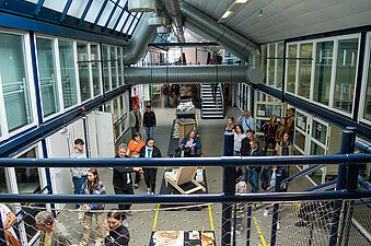 Highlights aus den beiden Fachbereichen AING und BG waren spektakuläre Experimente in den Laboren, wie Crash-Tests zum Tragverhalten von Stahlbetonbalken, virtuelle Welten im Virtual Design LAB oder Blitz und Donner im Hochspannungslabor, Ausstellung und Präsentation studentischer Arbeiten, Mappenberatung und vieles mehr. Nicht zu vergessen die Möglichkeit Kooperationspartner zum dualen Studium persönlich vor Ort kennen zu lernen.