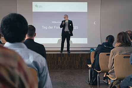 Prof. Peter Starke, Vizepräsident für Forschung und Transfer, eröffnete den Tag der Forschung 2025 an der Hochschule Kaiserslautern, der in diesem Jahr am Campus Kammgarn stattfand.