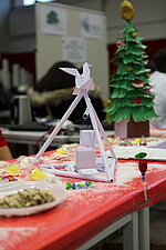 Eine sagenhafte Fehlerquote von lediglich 1,6 mg wies die beste Waage auf, die Team 7 aus der Hochschule gebaut hatte. In der Wertung der Besucherinnen und Besucher hatte das Team der Landgraf Ludwig Realschule den schönsten und kreativsten Stand, an dem es zudem dem weihnachtlichen Anlass gemäß, leckere Zimtwaffeln gab.