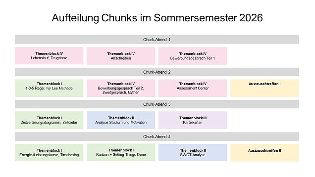 | Chunk-Abend I | 22.04.26 um 15:30 Uhr | Bewerbungsgespräch Teil 1 |