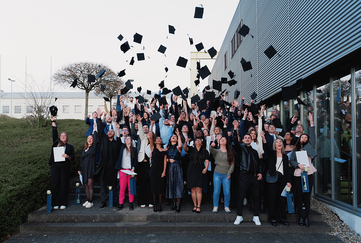 Der emotionalste Moment des Abends folgte mit der feierlichen Übergabe der Zeugnisse. Unter großem Applaus betraten die Absolventinnen und Absolventen die Bühne – ein Augenblick voller Stolz, Erleichterung und Freude, der vielen Gästen sichtbar unter die Haut ging. Das anschließende Gruppenfoto mit dem legendären und traditionellen Hut-Wurf hielt diesen besonderen Moment für die Ewigkeit fest.