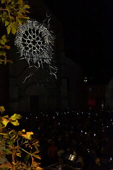Aber nicht nur das Innere wird bespielt. Im anschließenden Open-Air-Teil der Veranstaltung wird die Fassade der Kirche zur kritischen Auseinandersetzung mit Zukunftsthemen erschlossen.