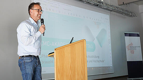 Der Nachmittag war gefüllt mit Vorträgen der Pirmasenser Professoren und des Vice President Corporate Development der Midas Pharma GmbH, Dr. Andreas Brutsche. Die Sprecher zeigten auf, dass es möglich ist, Rheinland-Pfalz als führenden Standort für Biotechnologie national und international zu positionieren. Pharma-Experte Brutsche skizzierte die Megatrends seiner Industrie. Er machte dabei auch deutlich, wie wesentlich gut ausgebildete Fachleute sind, um die komplexen Aufgaben zu bewältigen.