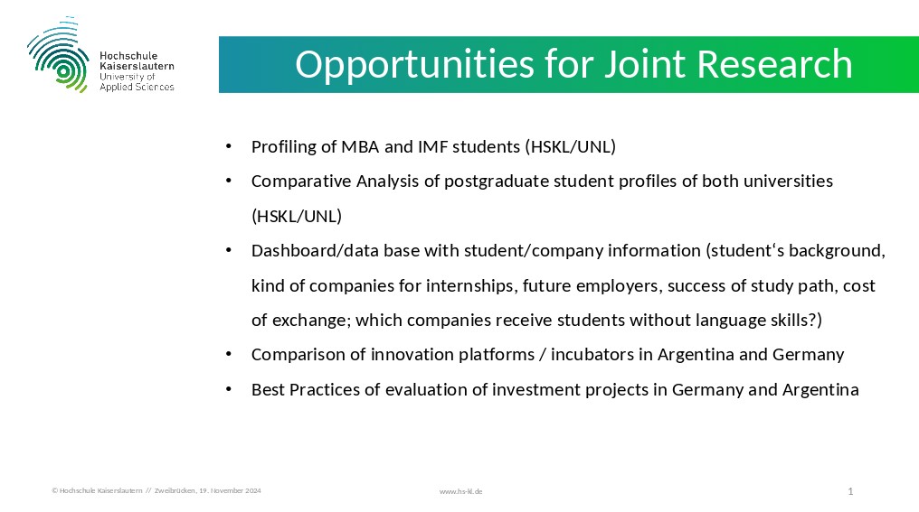 - Universidad Nacional del Litoral, Santa Fe (Argentinien): "International Management and Finance (Double Degree) (M.A.)" mit unserem Fachbereich BW